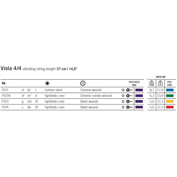 Viola Peter Inferd ビオラ弦ペーターインフェルドは豊かな音量とパワフルでクリアーな音色が特徴のシンセティック弦です。レスポンスが良く張力が高めに設定されていて、華やかすぎずに音の輪郭を際立てさせたい楽器には効果的です。