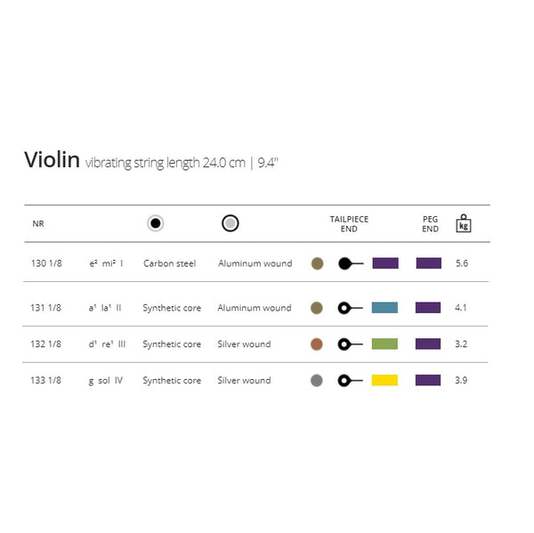 1/8 Dominant (ドミナント) は明るくガット弦のような豊かな響きをもち、湿度変化にも強く、フルサイズ譲りのチューニング安定性に優れた世界的に大人気の分数バイオリン弦です。