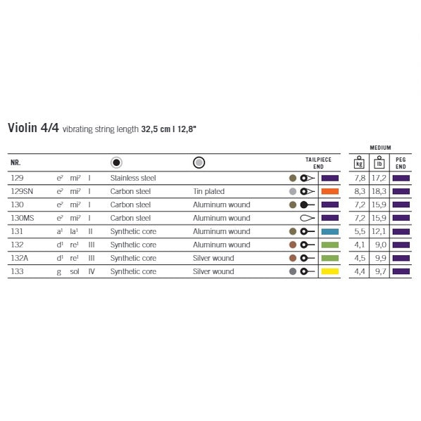 バイオリン弦ドミナントのカラーチャート