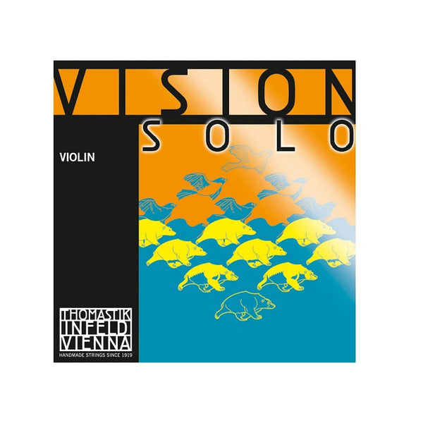 Violin Vision solo バイオリン弦ヴィジョン・ソロは、ヴィジョンよりも華やかでありながら暖かみを持った音色で、パワフルでバランス良くレスポンスが速いといった特徴があります。強めの弓圧でも音がつぶれにくく、インフェルド・レッドを上質にした感があるソリスト向けのセットです。